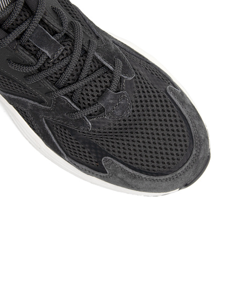 Верх кроссовок изготовлен из легкого и дышащего текстиля, что позволяет потоку воздуха проникать к стопе, сохраняя прохладу во время носки и препятствуя образованию запахов. Элементы из натуральной замши создают дополнительную защиту стопы и повышают износостойкость модели.