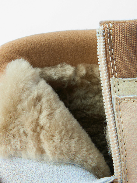 Верх выполнен из качественной натуральной кожи и текстиля. Теплая подкладка и стелька из натурального меха подарят тепло Вашим ногам в холодное время года.