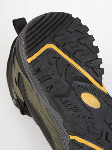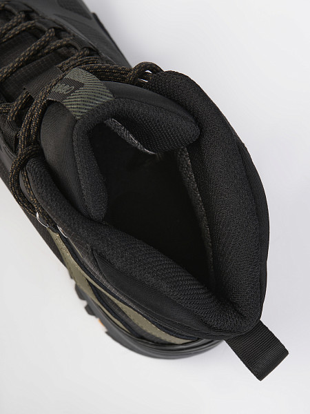 - Язычок соединен с верхом с обеих сторон, предотвращая попадание камней и снега в обувь и удерживая язычок по центру.