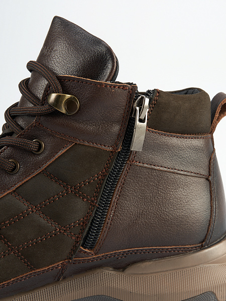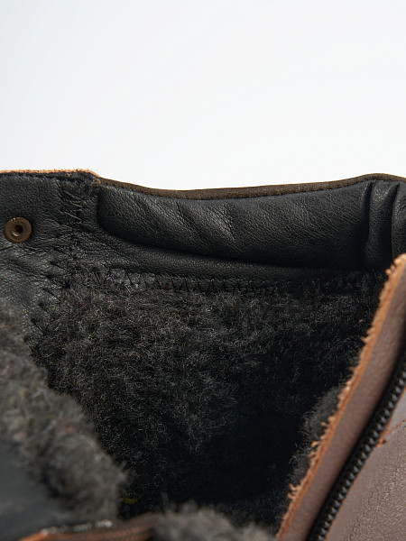 Верх выполнен из Натуральной кожи и Натурального нубука. Плотная подкладка из Натуральной шерсти сохранит тепло внутри ботинка.
