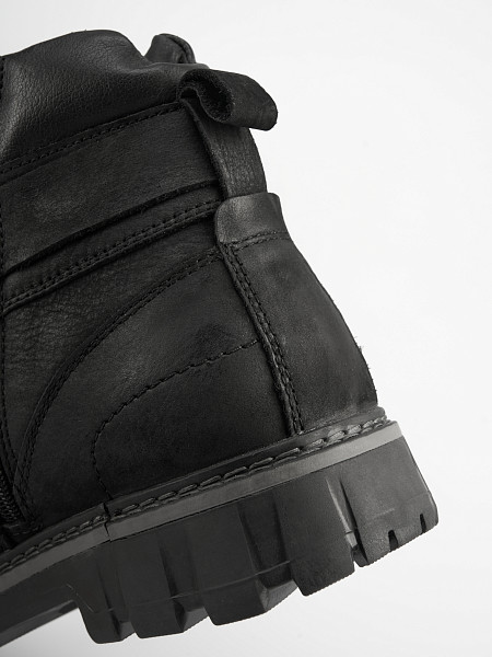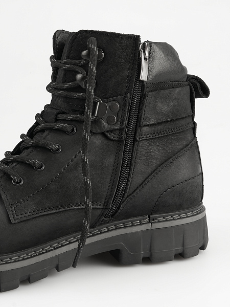 Верх выполнен из Натурального нубука и Натуральной кожи. Плотная подкладка из Натурального меха сохранит тепло внутри ботинка.