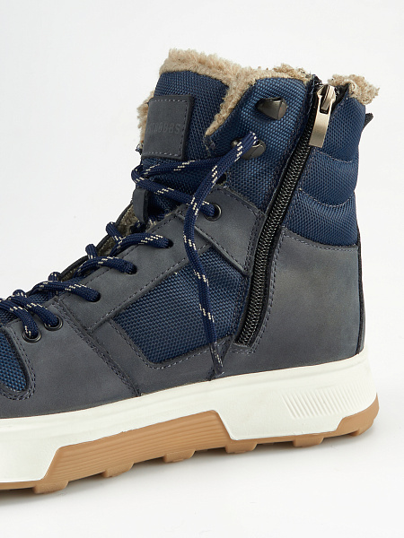 Верх выполнен из Натурального нубука и Текстиля. Плотная подкладка из Натуральной шерсти сохранит тепло внутри ботинка.