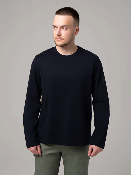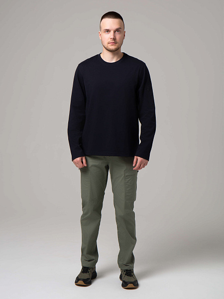 Сочетать такой лонгслив рекомендуем с брюками, жилетом, мембранной курткой.